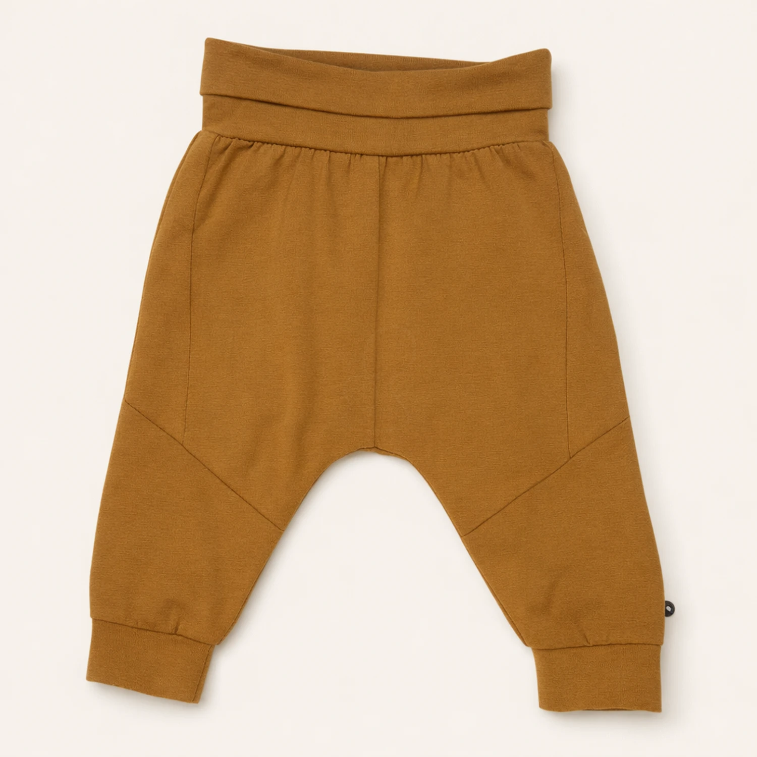 Комфортні штани для новонароджених в гірчичному кольорі, виготовлені з натуральних матеріалів.